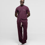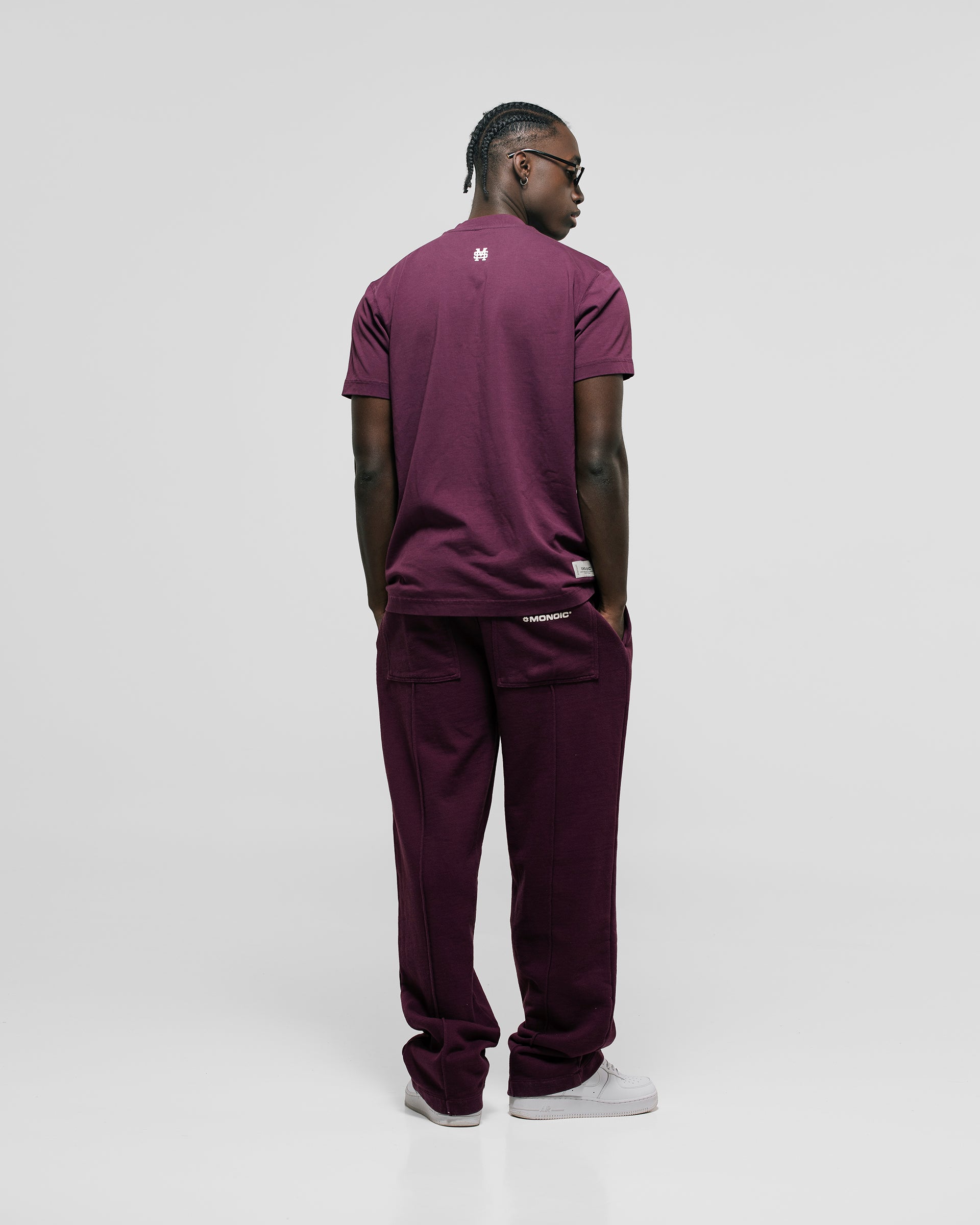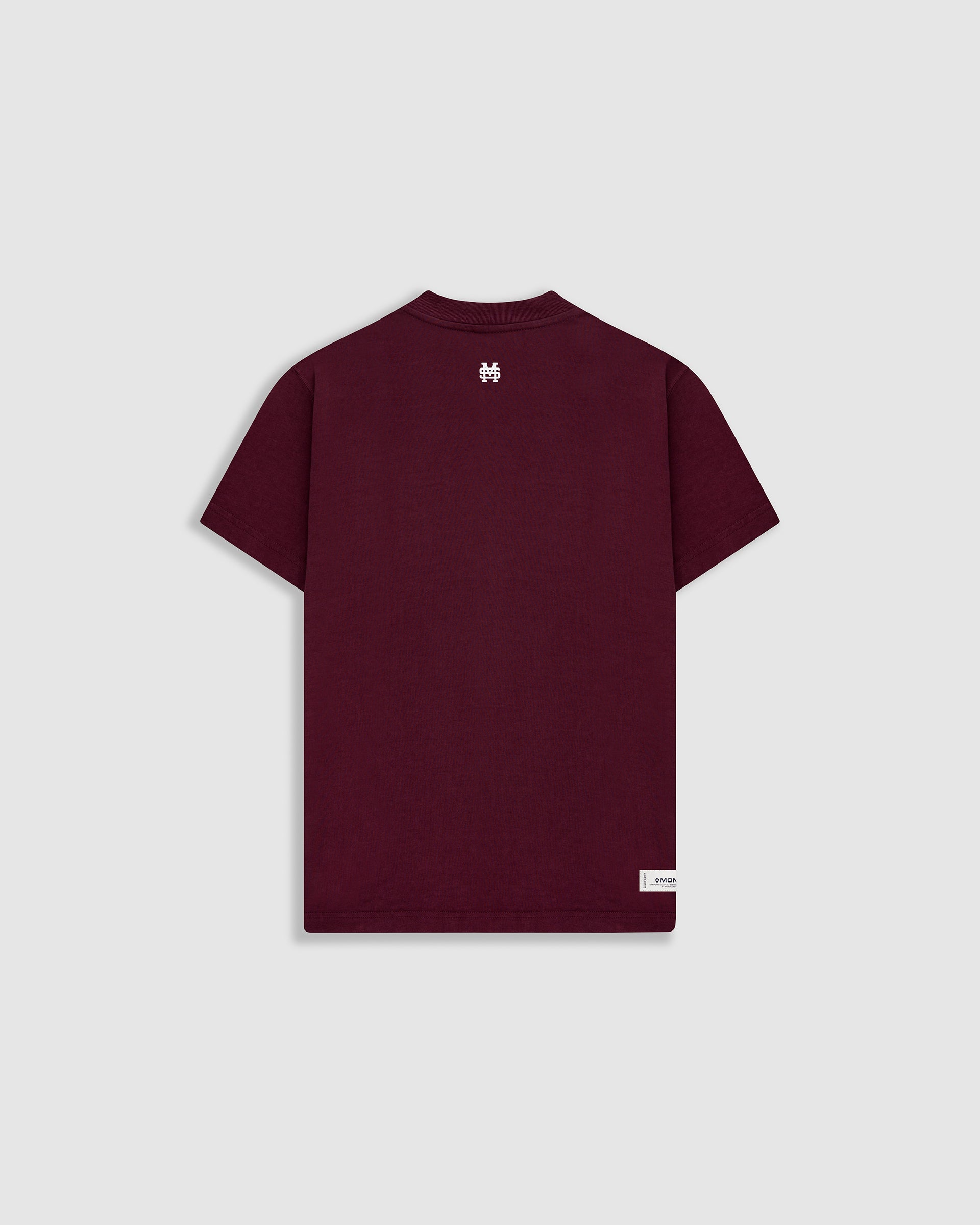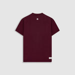 Short-sleeve T-shirt in Burgundy with a regular fit, made from premium heavyweight 100% cotton jersey (250 gsm). Ribbed crew neck and a puff (3D) screenprint logo on the left chest. Made in Colombia.