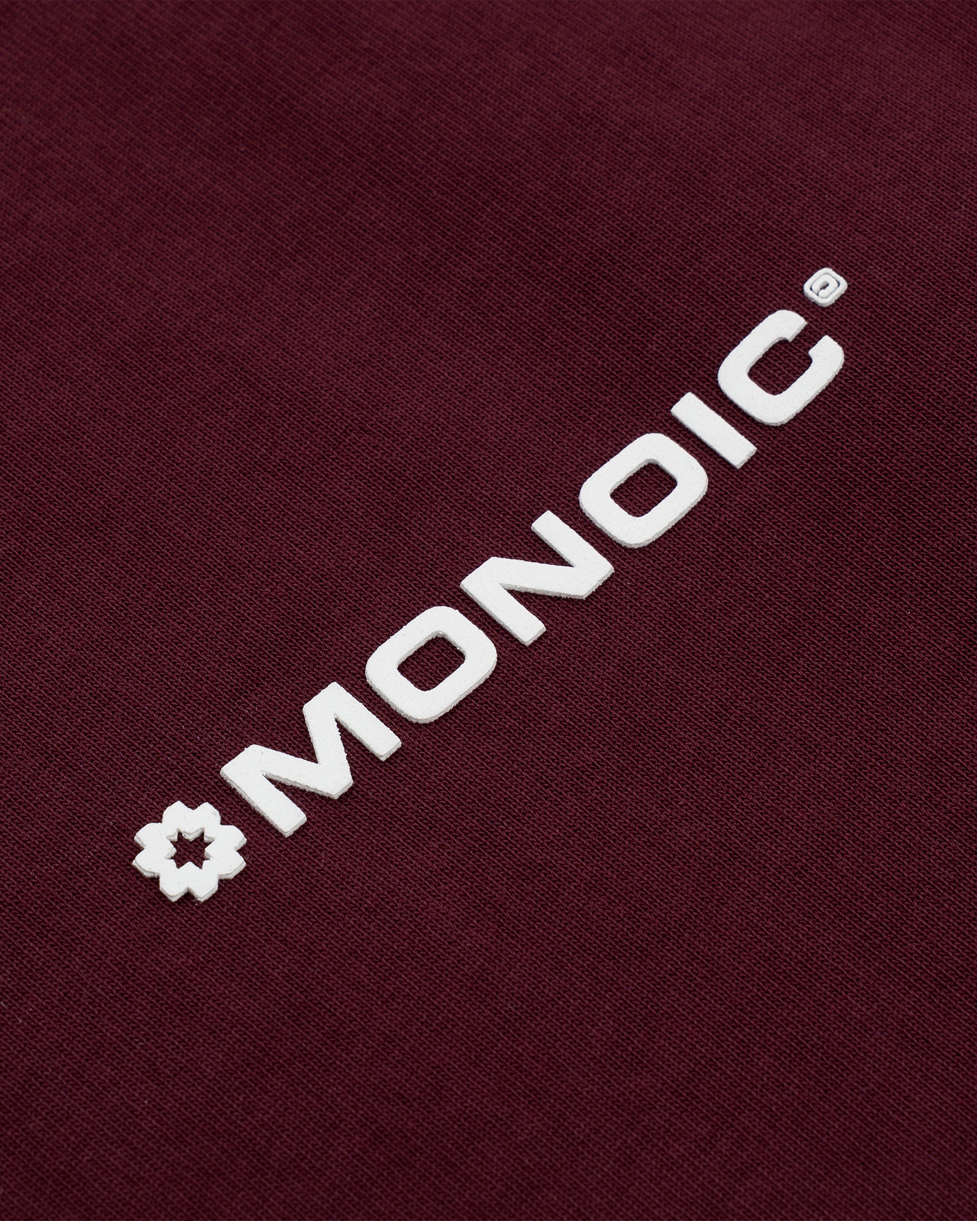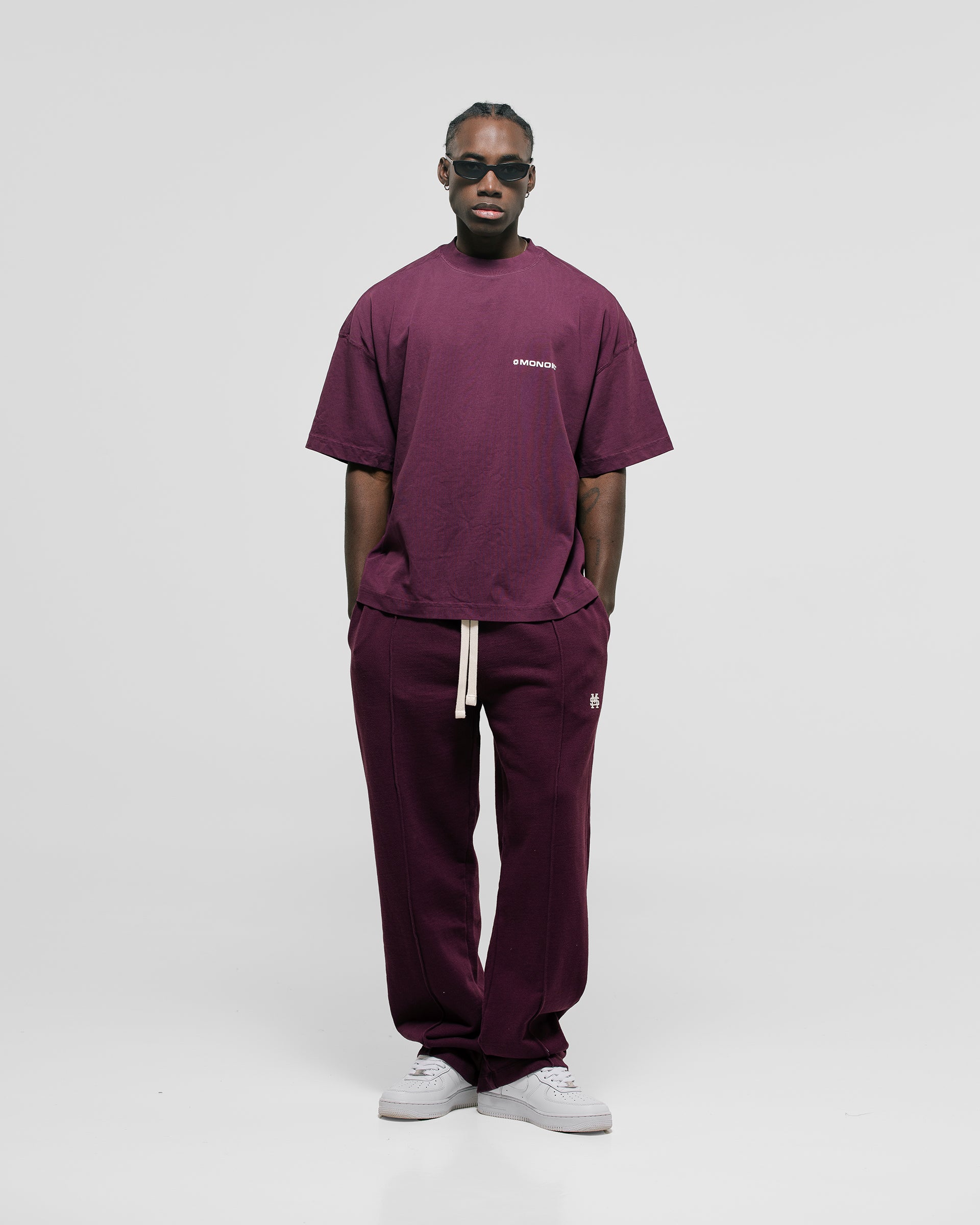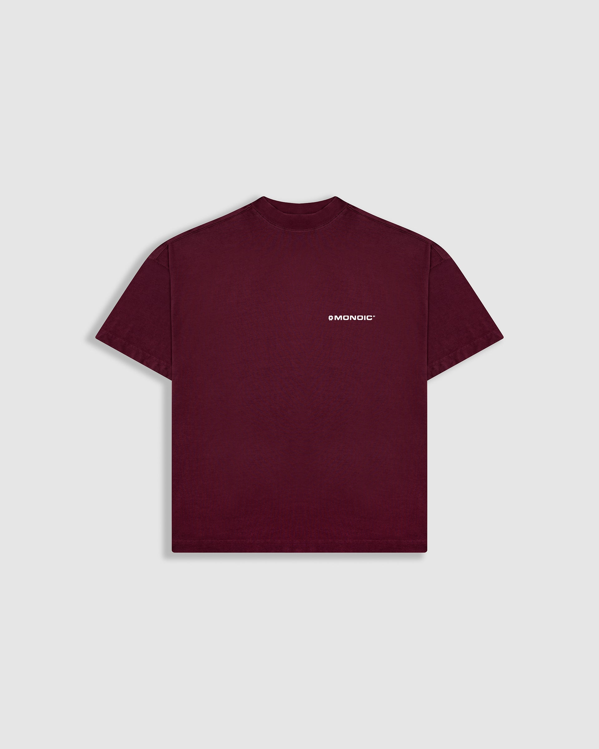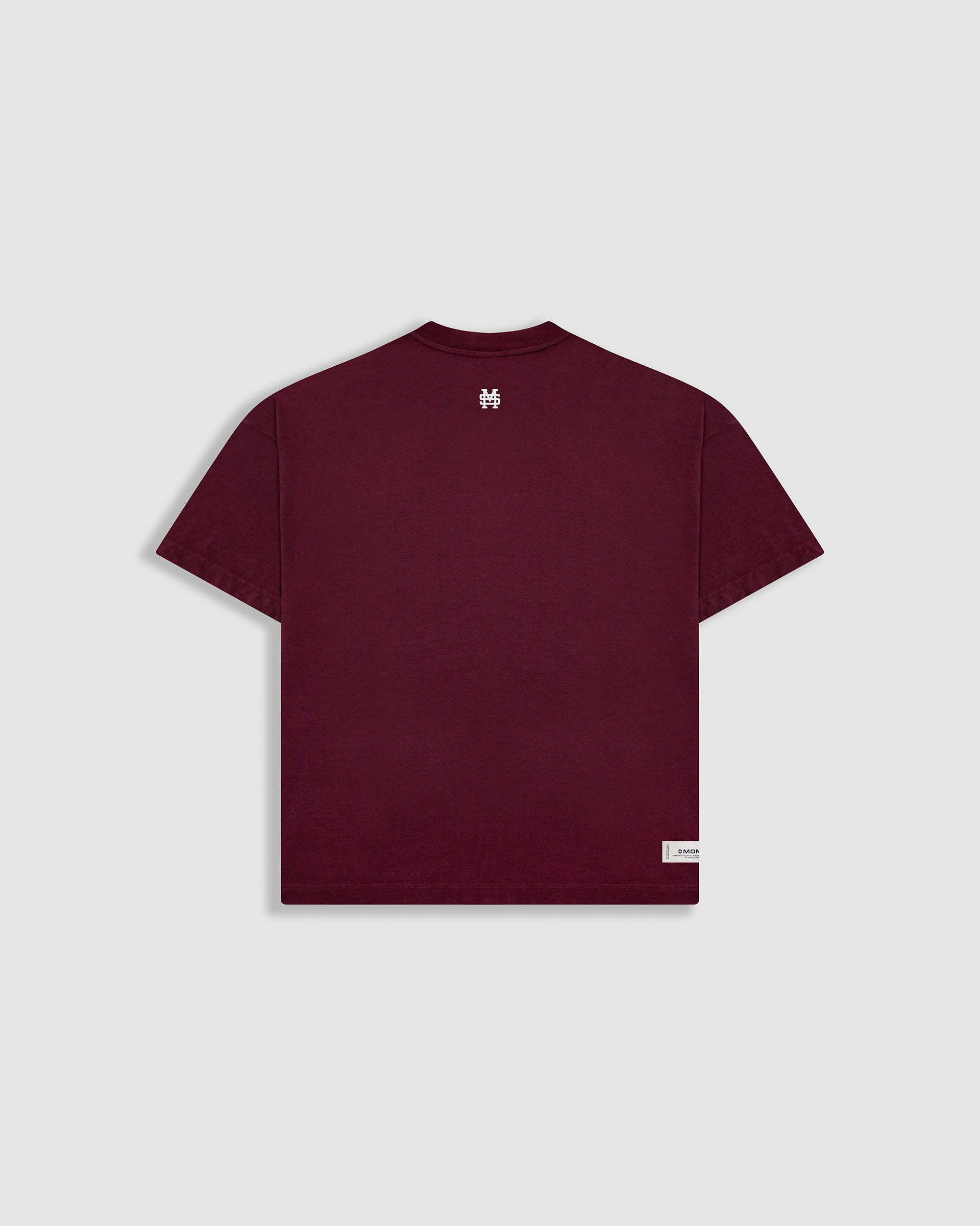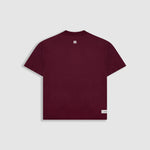 Boxy Fit T-shirt in Burgundy, crafted from premium 100% cotton jersey (250 gsm). Ribbed crew neck. Puff (3D) screenprint logo on the left chest and a raised monogram centered at the back neck. Made in Colombia.