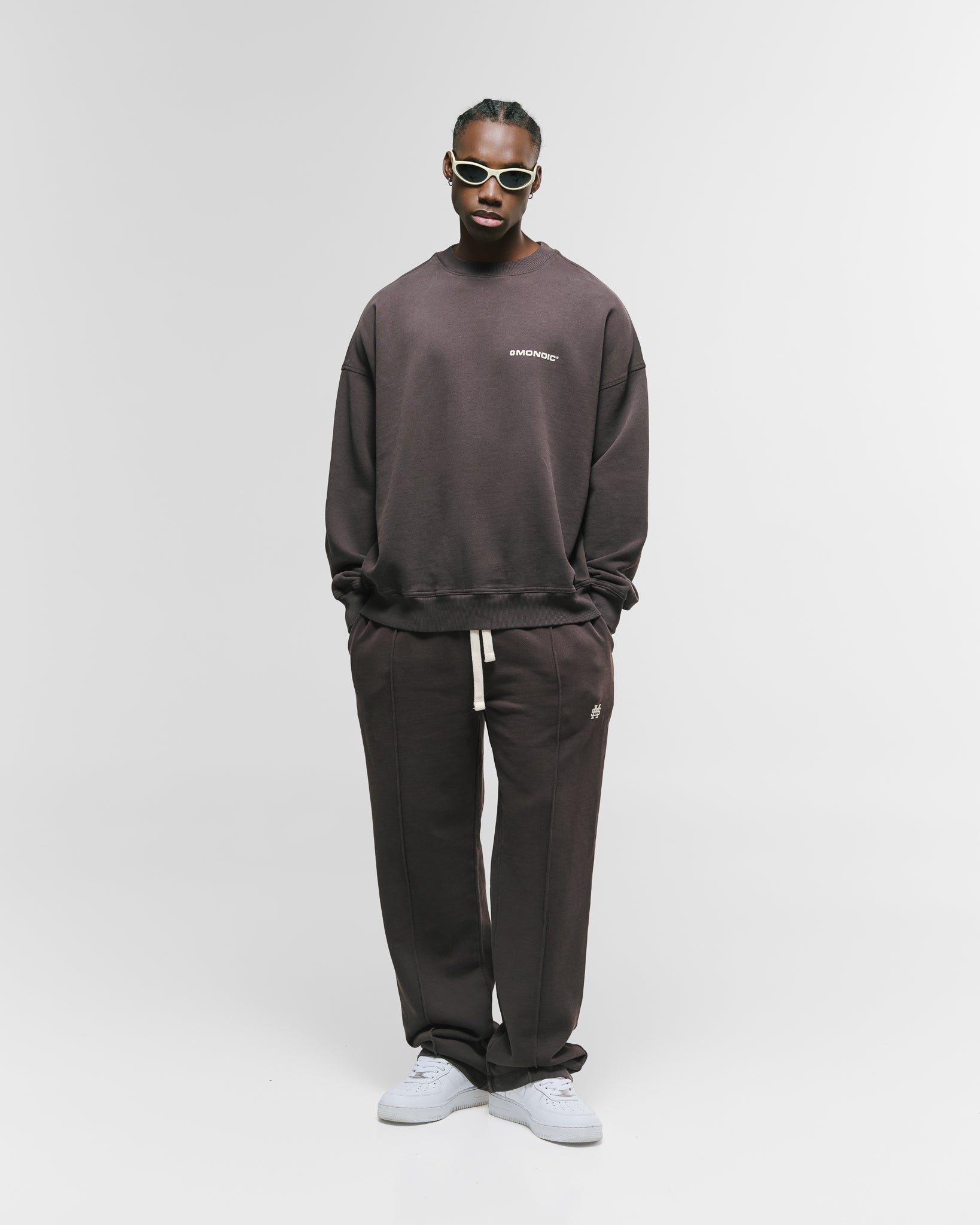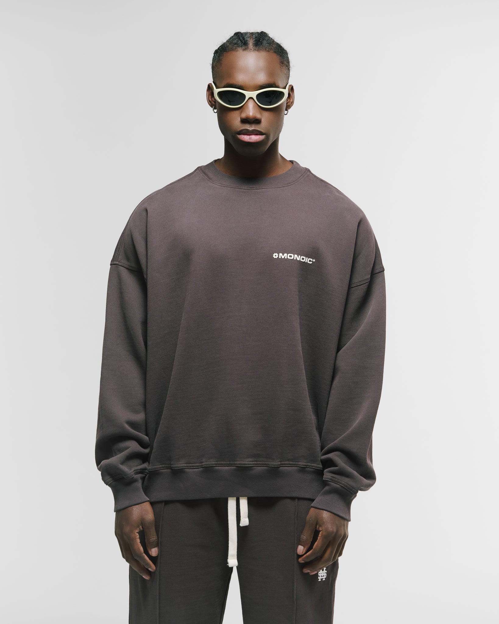 Basic Oversized Crewneck V4 in Brown, crafted from heavyweight 100% cotton French terry (400 gsm) with an oversized fit. Ribbed crew neck, cuffs and hem. Left-chest MONOIC logo in 3D screenprint. Made in Colombia.