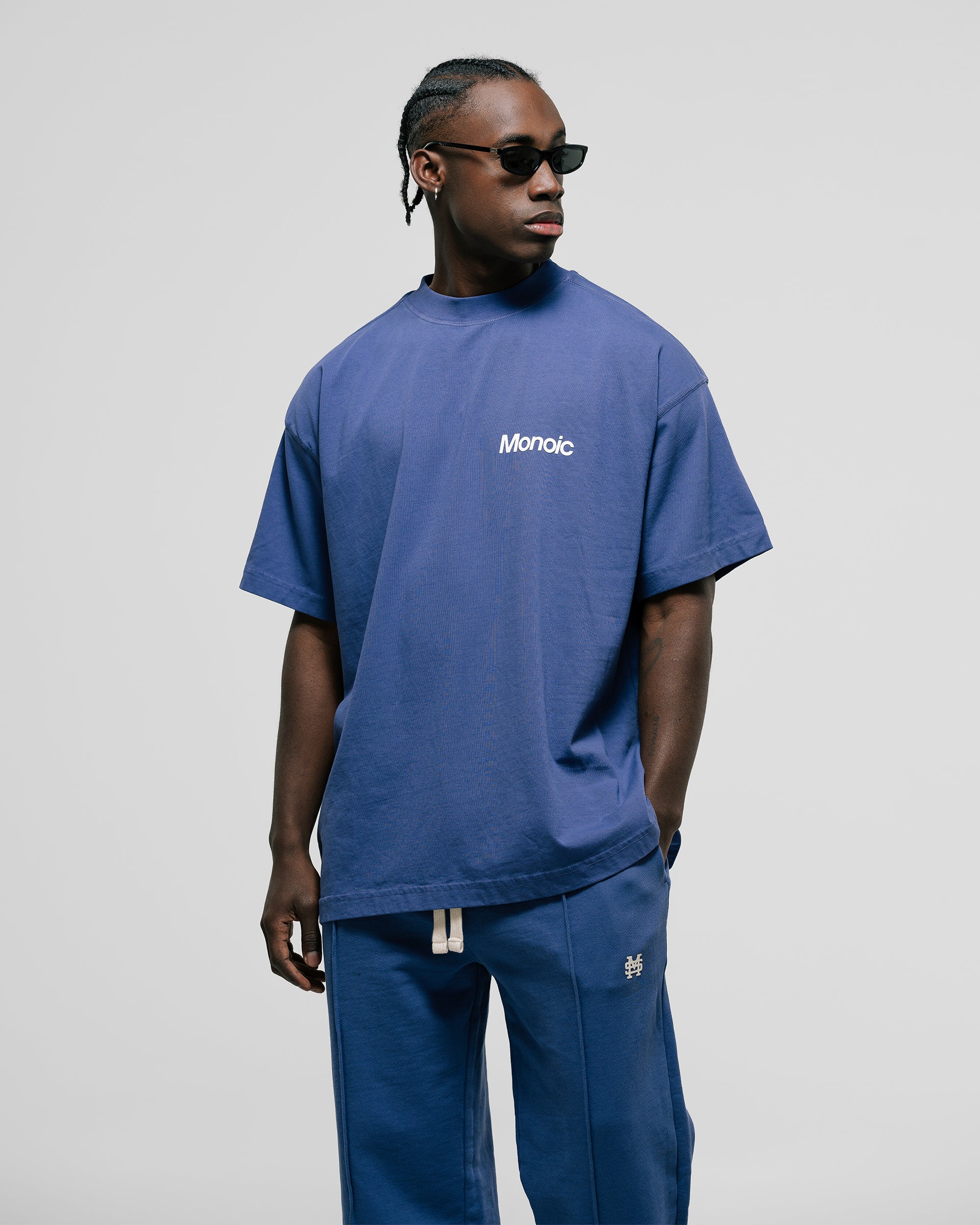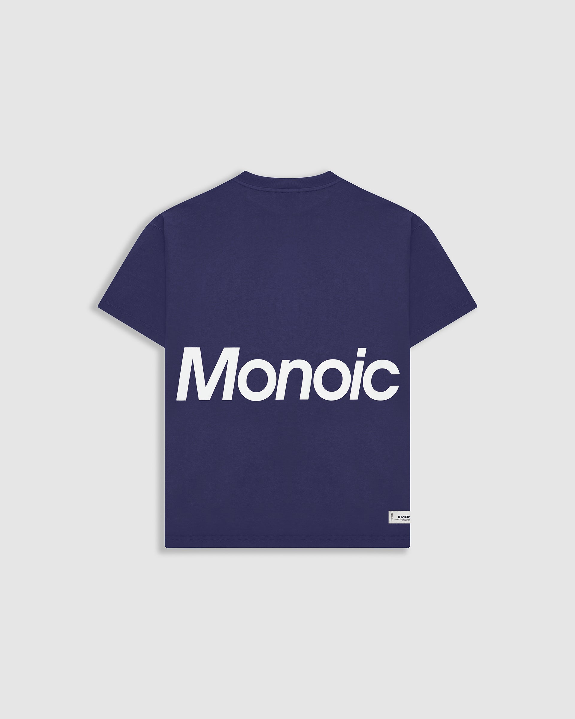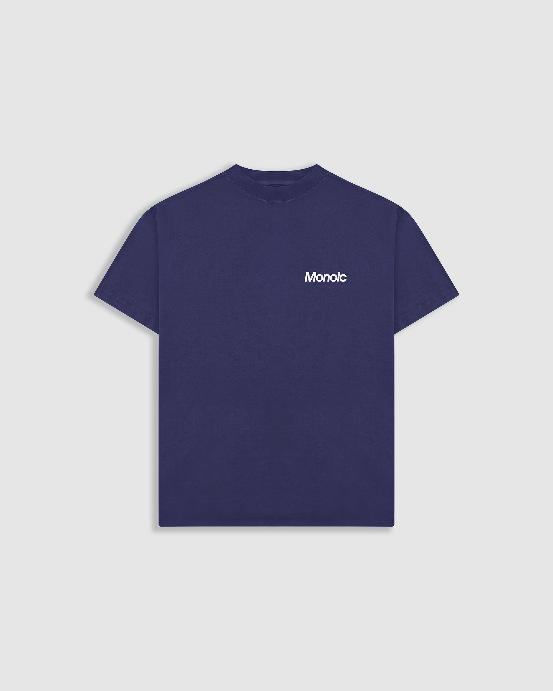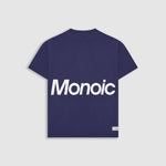 Short-sleeve T-shirt in Skipper Blue with an oversized fit, made from premium heavyweight 100% cotton jersey (250 gsm). Ribbed crewneck and a “Monoic” logo screenprint on the back. Made in Colombia.