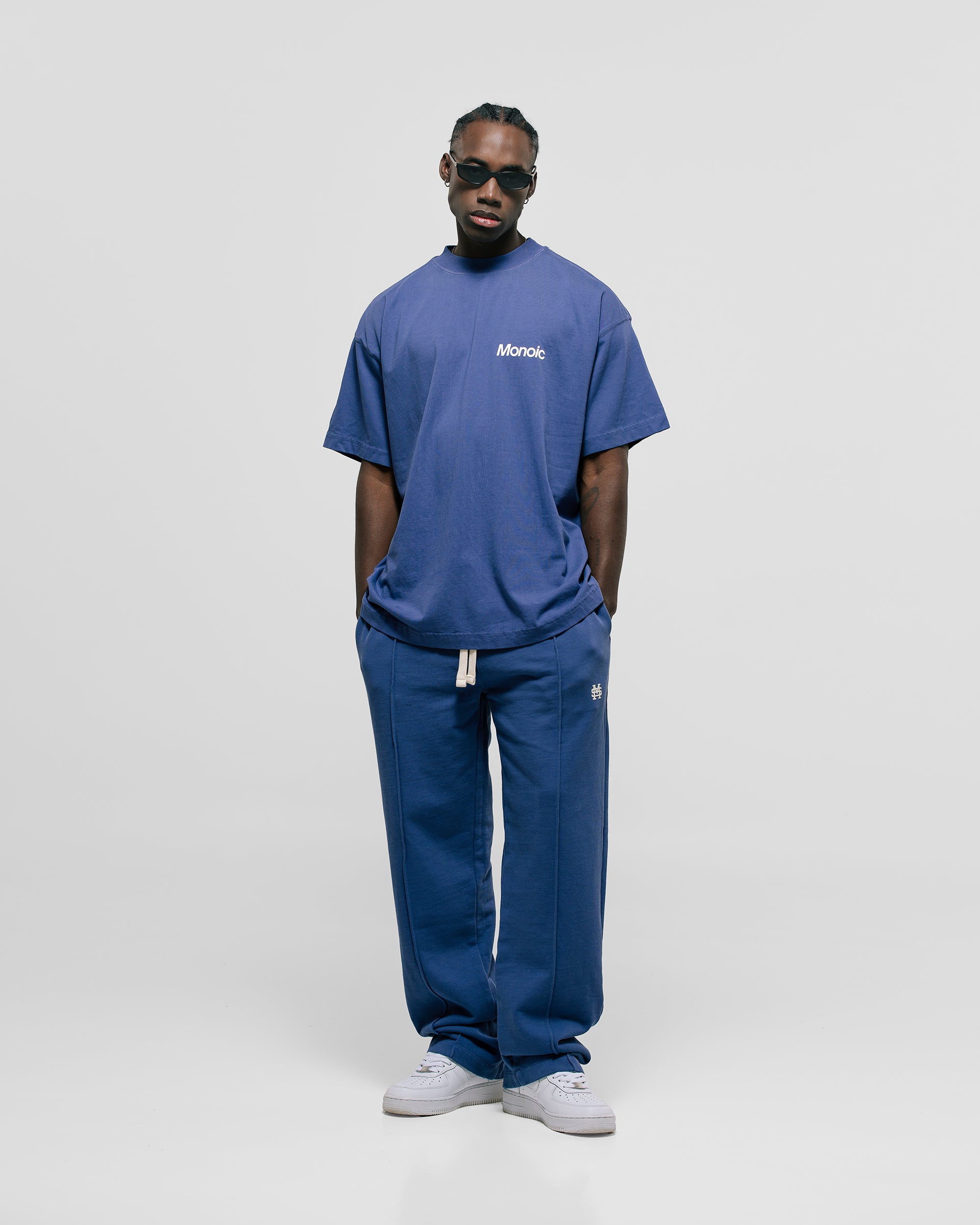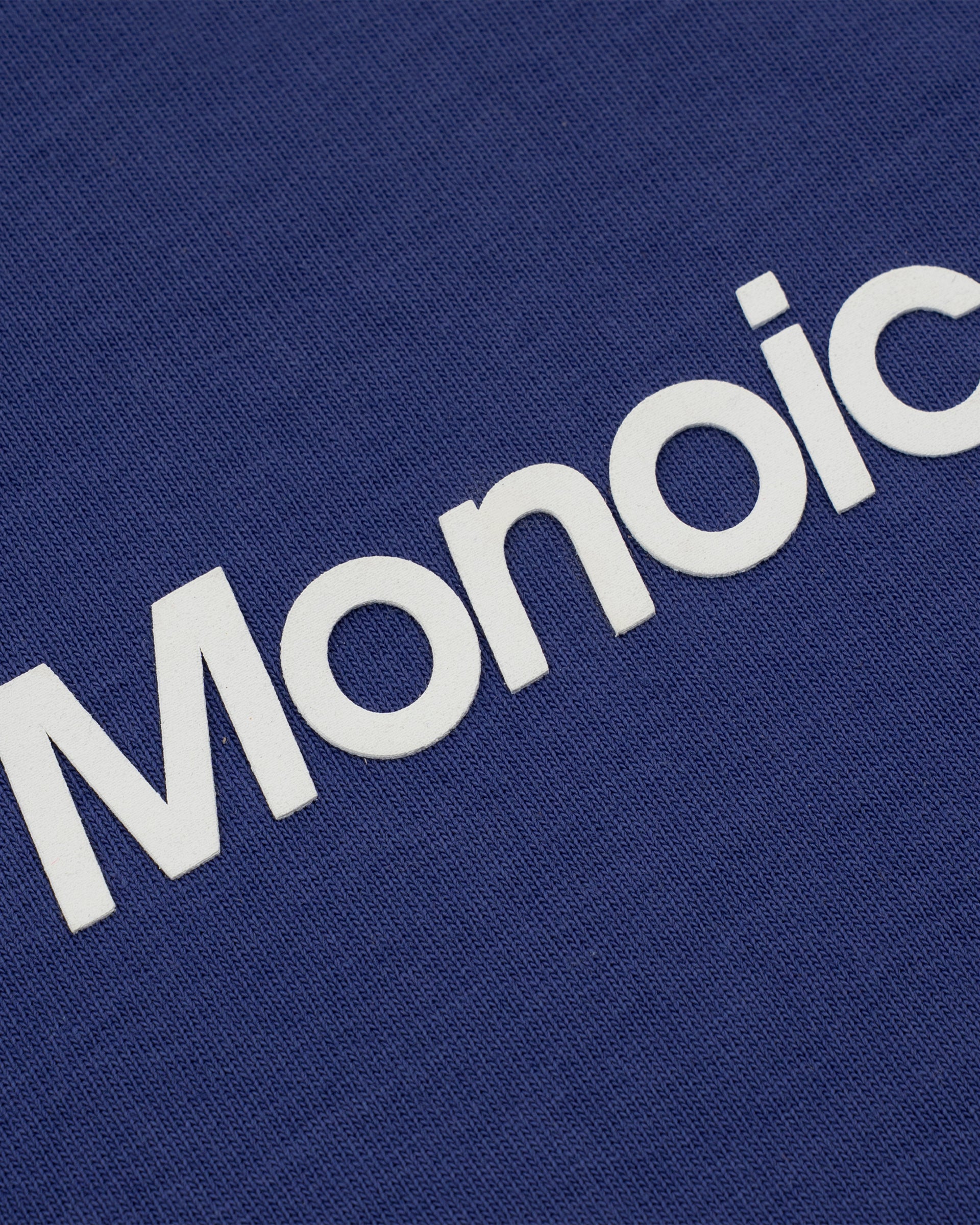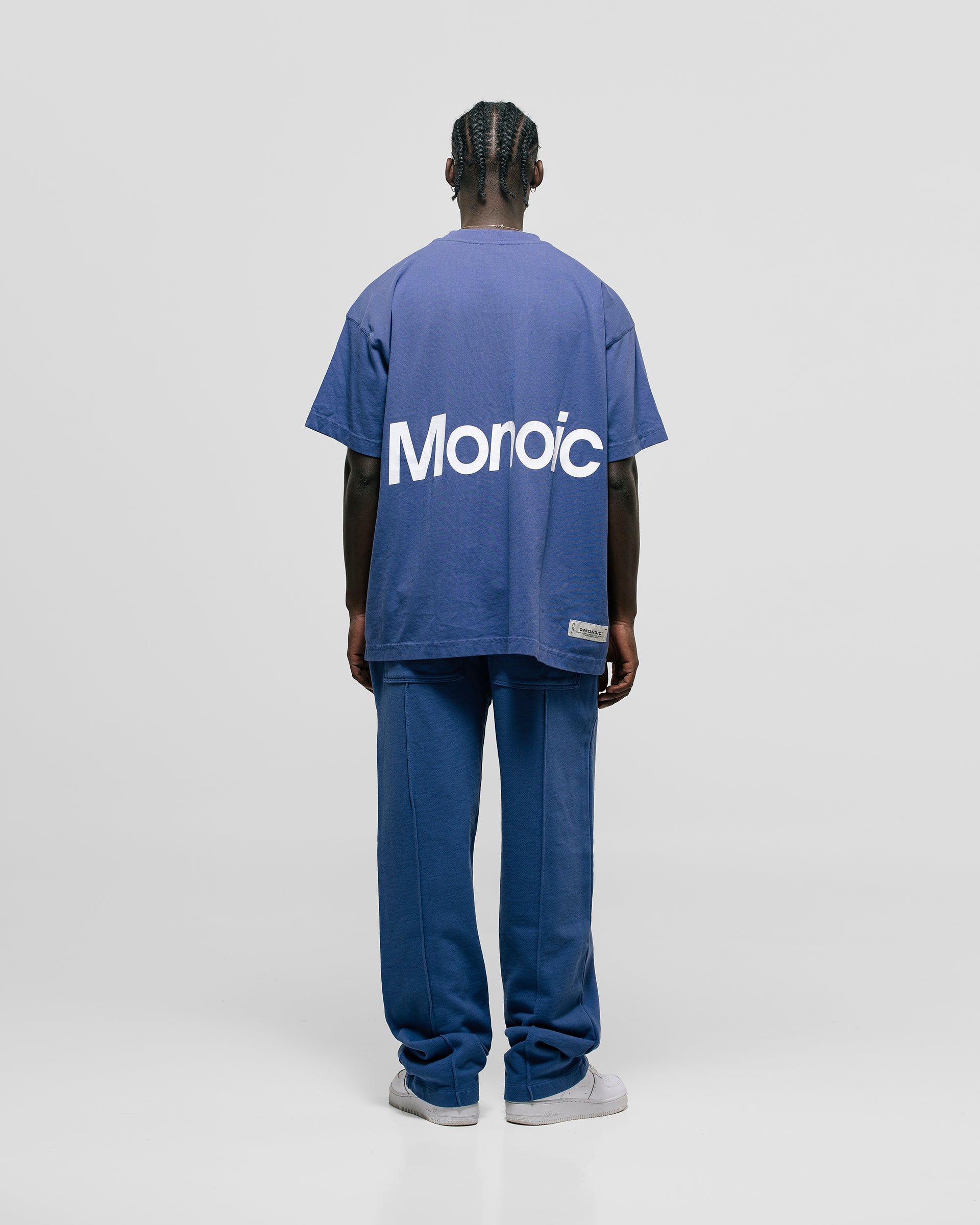 Short-sleeve T-shirt in Skipper Blue with an oversized fit, made from premium heavyweight 100% cotton jersey (250 gsm). Ribbed crewneck and a “Monoic” logo screenprint on the back. Made in Colombia.
